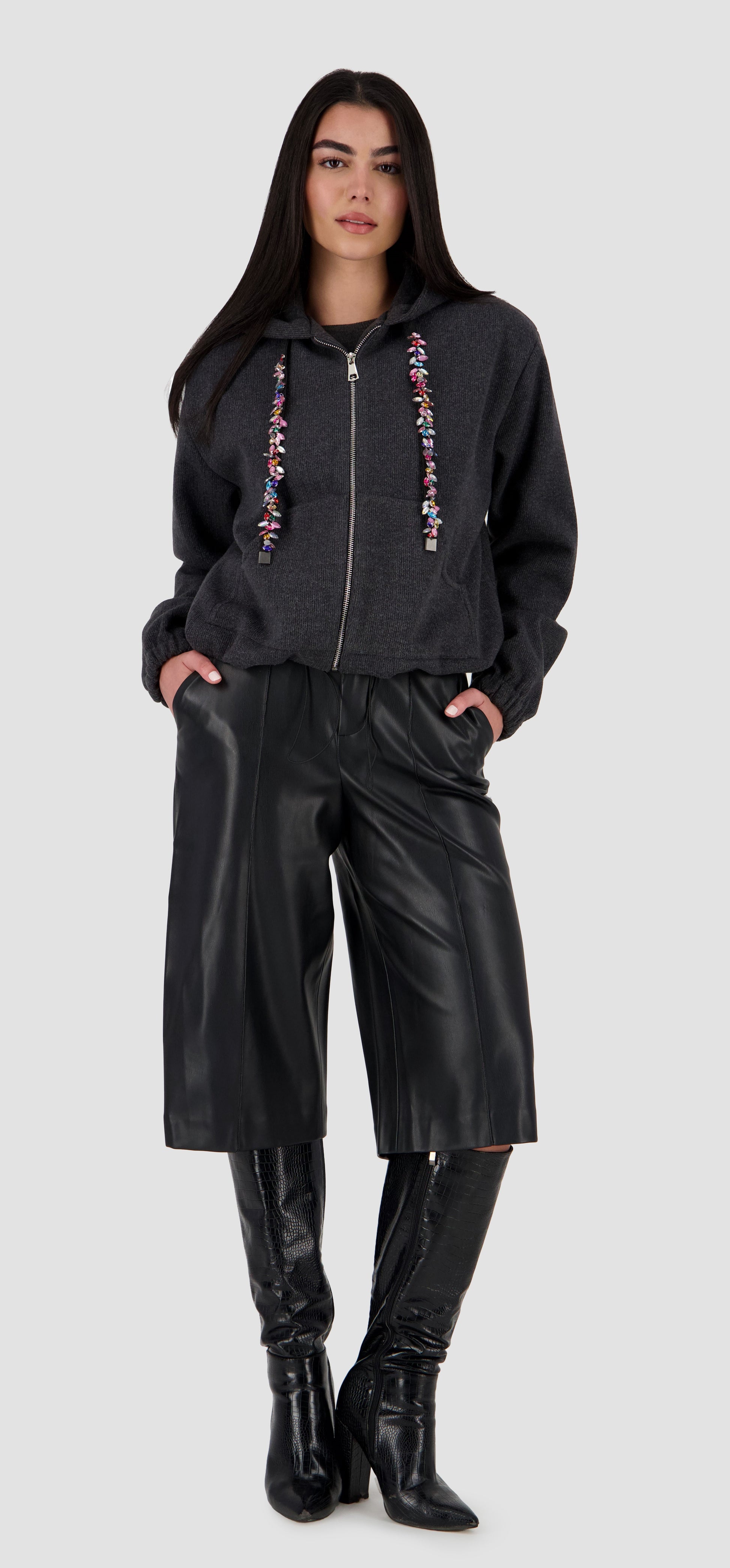 - Front zipper, adjustable drawstrings at bottom with 2 front pockets