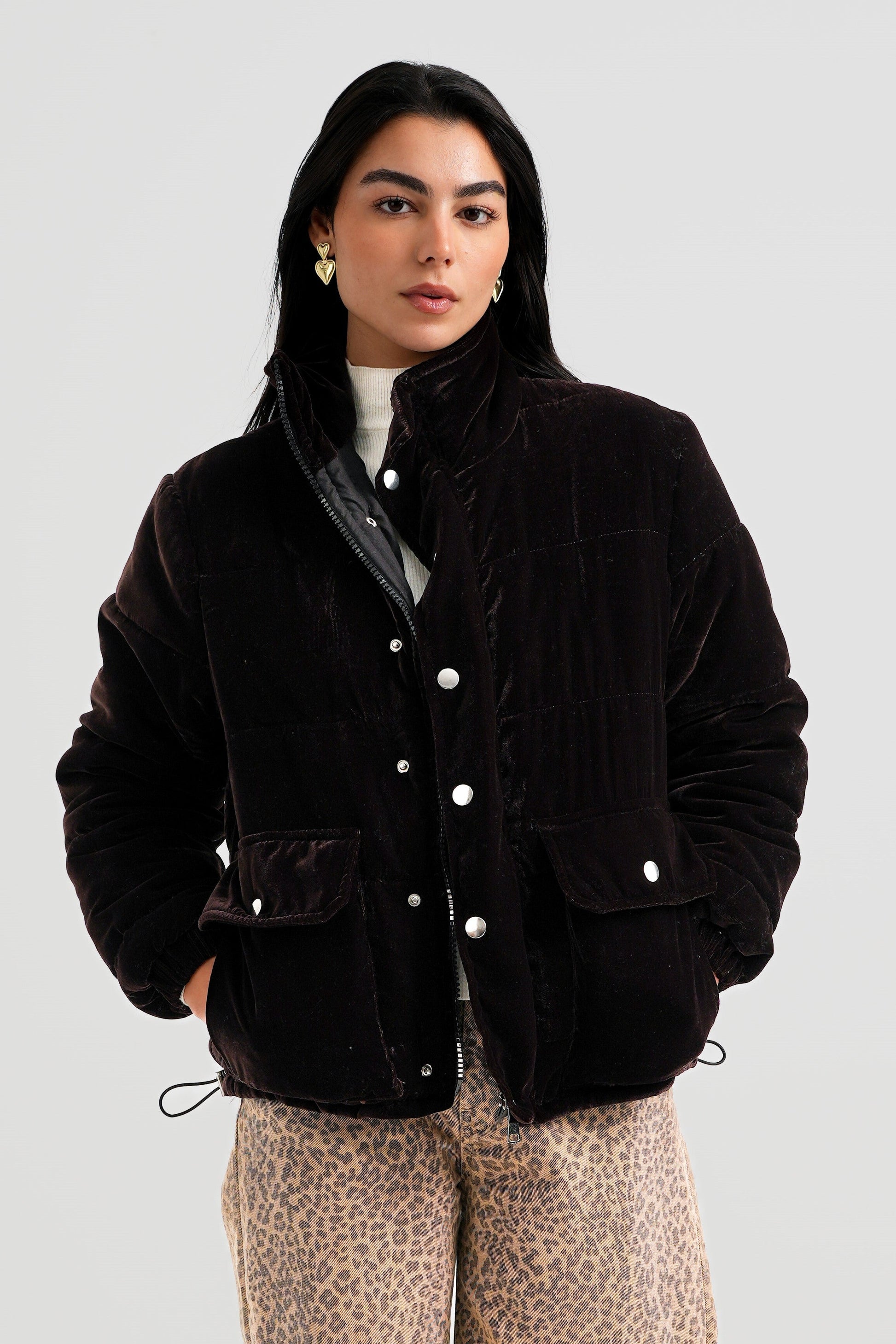 MORITZ - Velvet Puffer Jacket (Dark Brown)